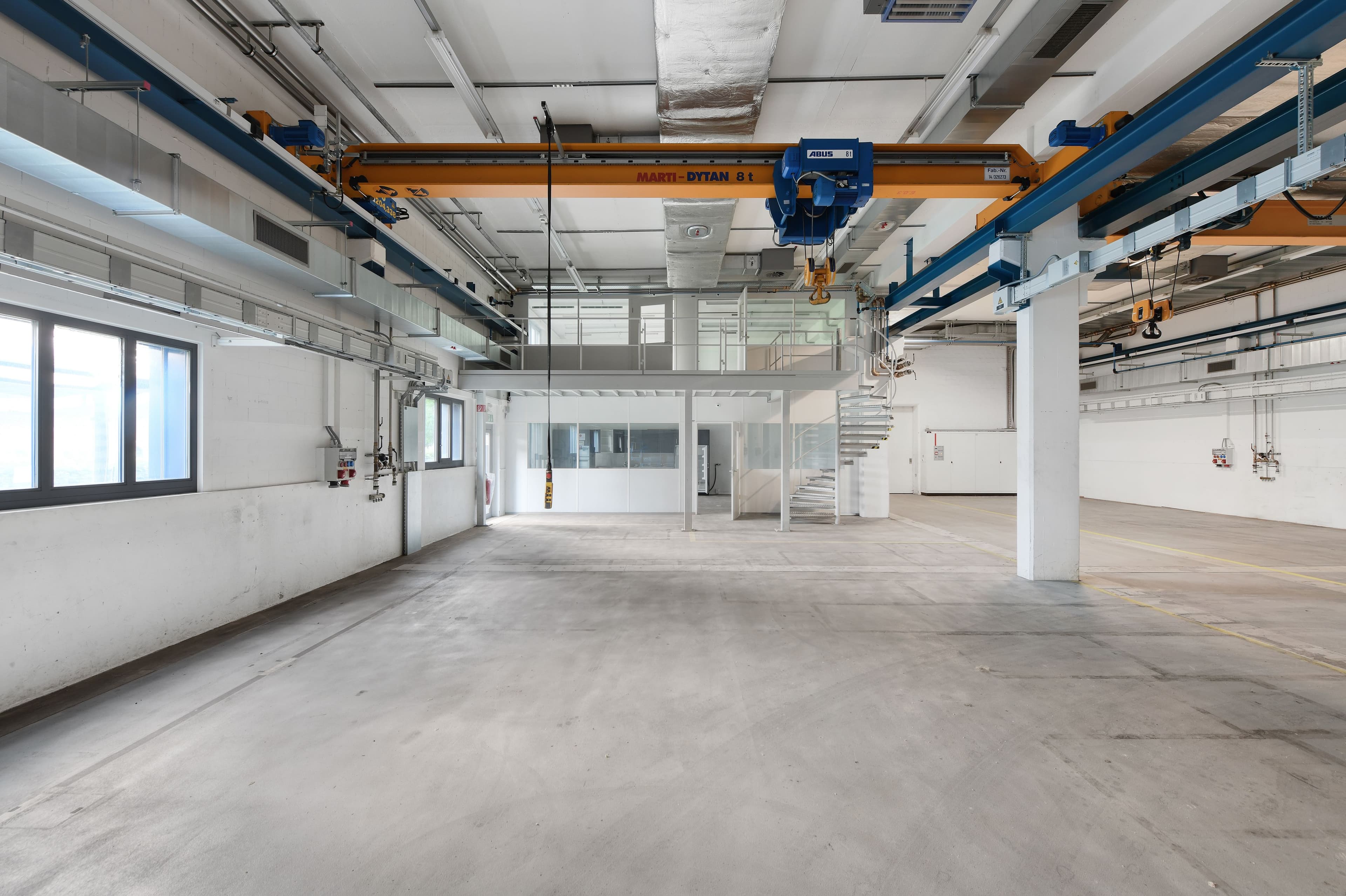 Das Gebäude ist beheizt, belüftet und verfügt über Fenster, die für ausreichend Tageslicht sorgen. Leistungsfähige Stromschienen und ein Druckluftnetz (ohne Kompressor) für Produktionsbedarf sind vorhanden. Die Gebäudetiefe beträgt 18 Meter. Ein Pausenraum mit Teeküche und ein Werkstattbüro stehen im Zwischengeschoss zur Verfügung. Die Flächen verfügen über eine integrierte WC-Anlage.