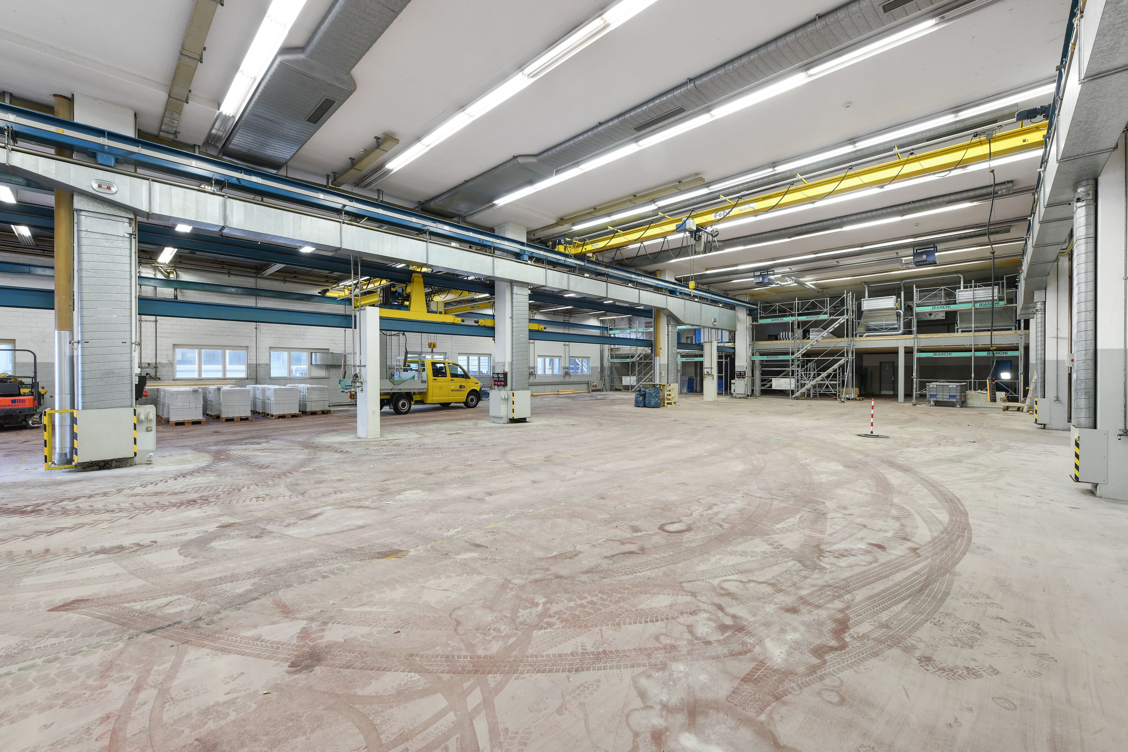 Die Halle im EG ist belüftet und ausgebaut, um eine angenehme Arbeitsumgebung zu gewährleisten. Die Flächen verfügen über integrierte WC-Anlagen.
